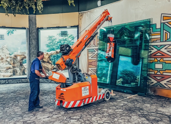 • MPK20. Модель очень удобная и универсальная. Мини-кран не только поднимает грузы весом в 2 т, но и перевозит их по ровной поверхности на ограниченном пространстве. Он может передвигаться по узким проходам и выполнять работы по остеклению благодаря вакуумным манипуляторам.