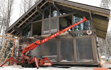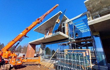 Наши объекты - Мини-кран и вакуумный захват Арлифт на сложном остеклении в элитном поселке