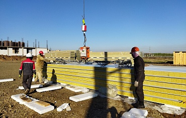 Наши объекты - Вертикальный монтаж длинных сэндвич-панелей в Уфе