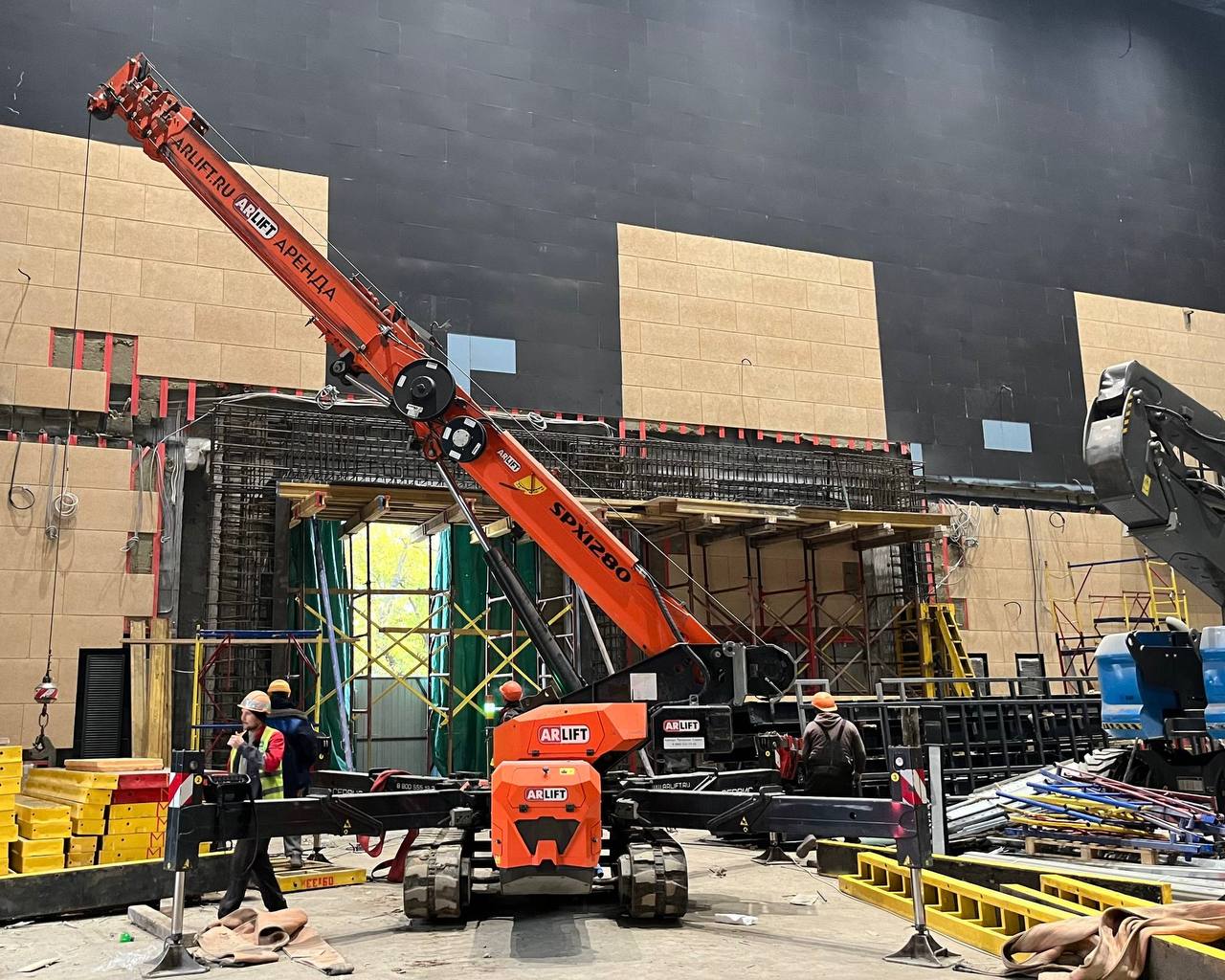 Мы предложили неожиданное решение: работать без погрузчика в паре с краном. И применили мини-кран SPX 1280 с функцией Pick&Carry. Такая технология позволяет работать технике и как обычный кран (в режиме на опорах), и как погрузчик.
