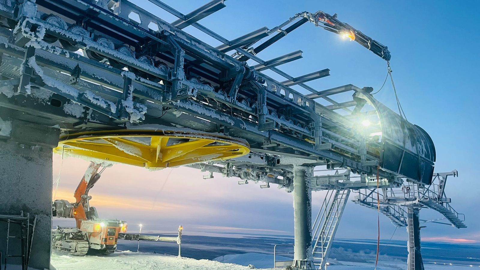Южный склон горы Айкуайвенчорр в Кировске — место, где стандартные решения не работают. Крутой и недоступный склон без подъездных путей, экстремальные морозы и постоянные снегопады. Именно в таких нестандартных условиях два месяца техника ARLIFT выполняла монтаж канатной дороги.