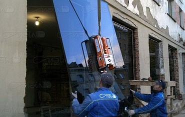 Вакуумный захват Arlifter GS-850 смонтировал несколько крупногабаритных стеклопакетов при плохих погодных условиях на строящейся базе отдыха.