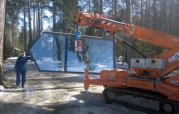 Монтаж стекла мини-краном и вакуумным захватом