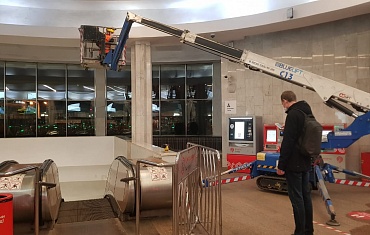 Коленчатая спайдер-вышка С13, одна из самых компактных в семействе Арлифт, помогла произвести замену камер видеонаблюдения в московском метрополитене.